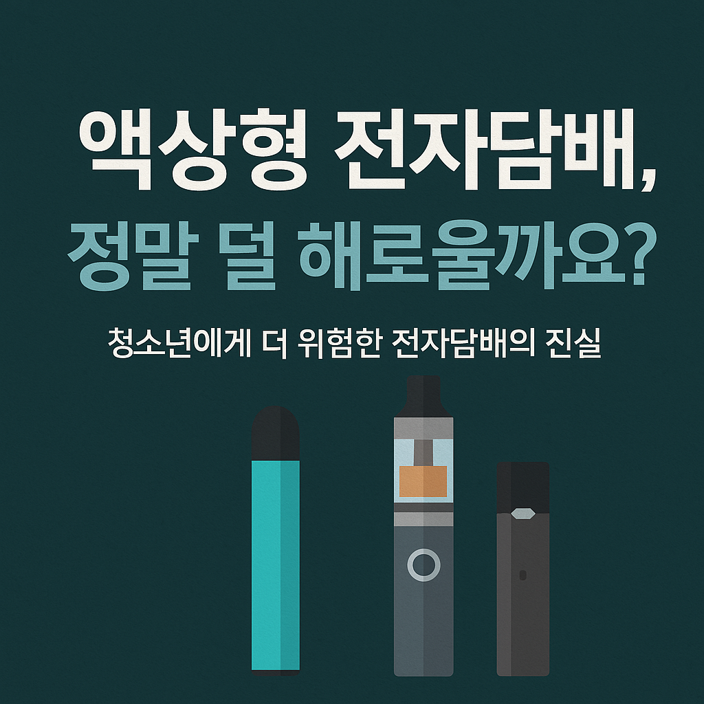 액상형 전자담배는 니코틴이 포함된 액체(액상)를 고온으로 가열해 그 증기를 흡입하는 방식의 제품입니다. 외형은 일반 담배와 다르며, 다양한 향과 디자인으로 소비자들의 호기심을 끌고 있습니다. 제조사들은 이를 기존의 일반 담배보다 '덜 해로운 대안'으로 홍보하고 있지만, 현재까지 이를 입증할 만한 과학적 근거는 충분하지 않습니다. 오히려 전자담배는 다양한 맛과 향료를 통해 특히 청소년들에게 큰 호기심을 불러일으키며, 흡입 경험이 반복되면서 심각한 중독으로 이어질 수 있다는 점에서 더욱 주의가 필요합니다.