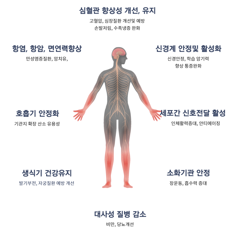 산화질소는 우리 몸에서 혈관을 이완시키고 확장시켜 주는 역할을 하는 물질로 이 풍부한 산화 질소는 혈액순환도 잘 되게 하고 혈관 내피세포의 건강을 유지해 주는 역할을 합니다.