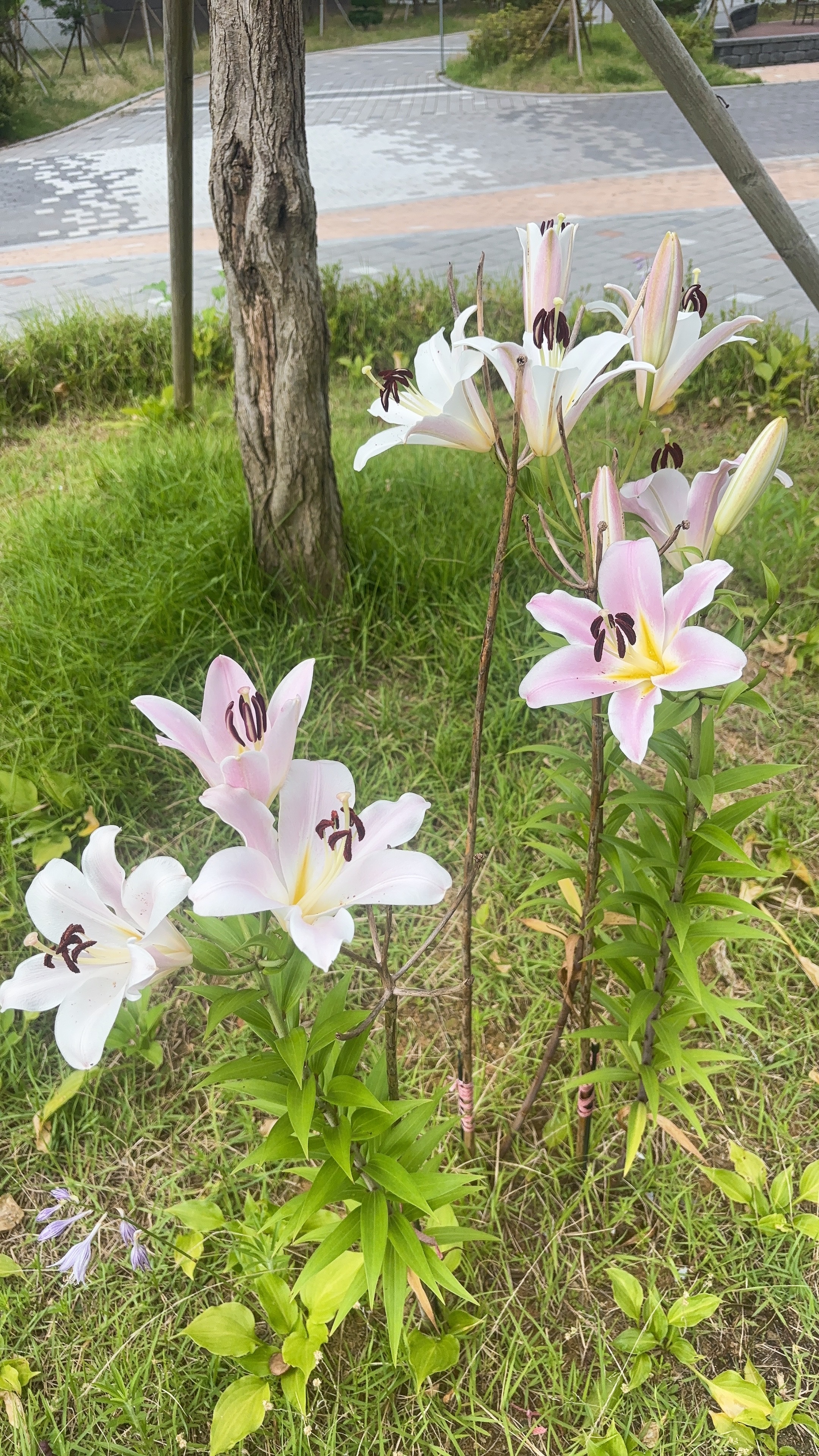 고양이가 꽃잎을 냠냠 뜯어먹고 있다
