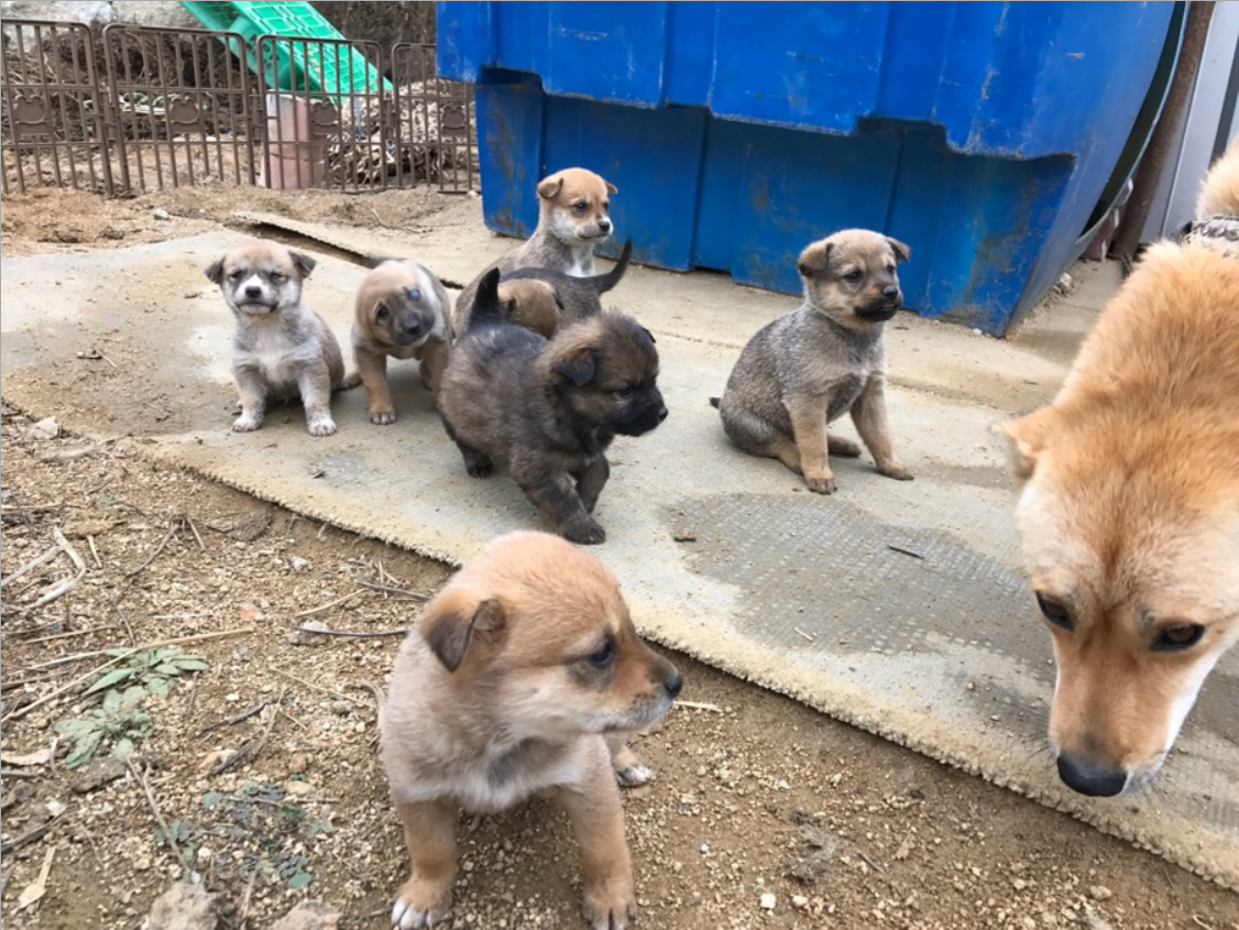 강아지들 마당에서 자유로이 뛰놀고 새끼도 여럿 낳고 보호하는 어미를 보면서