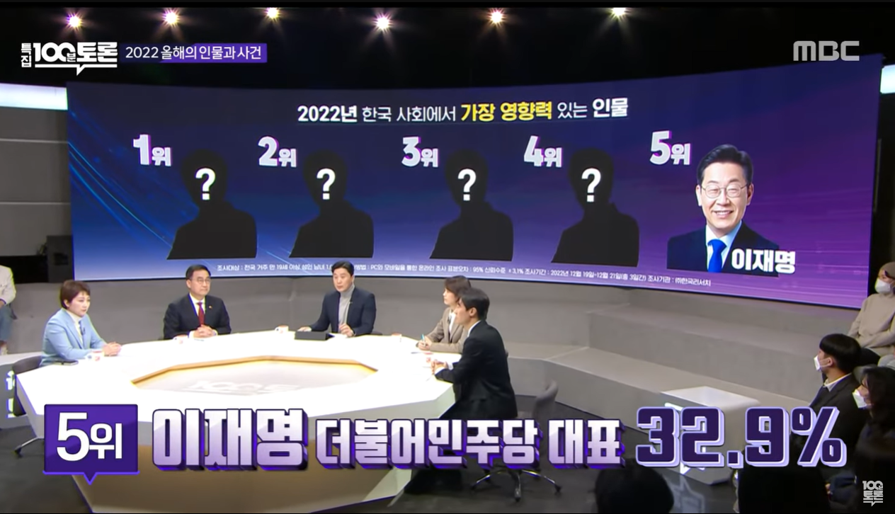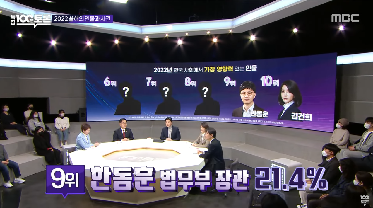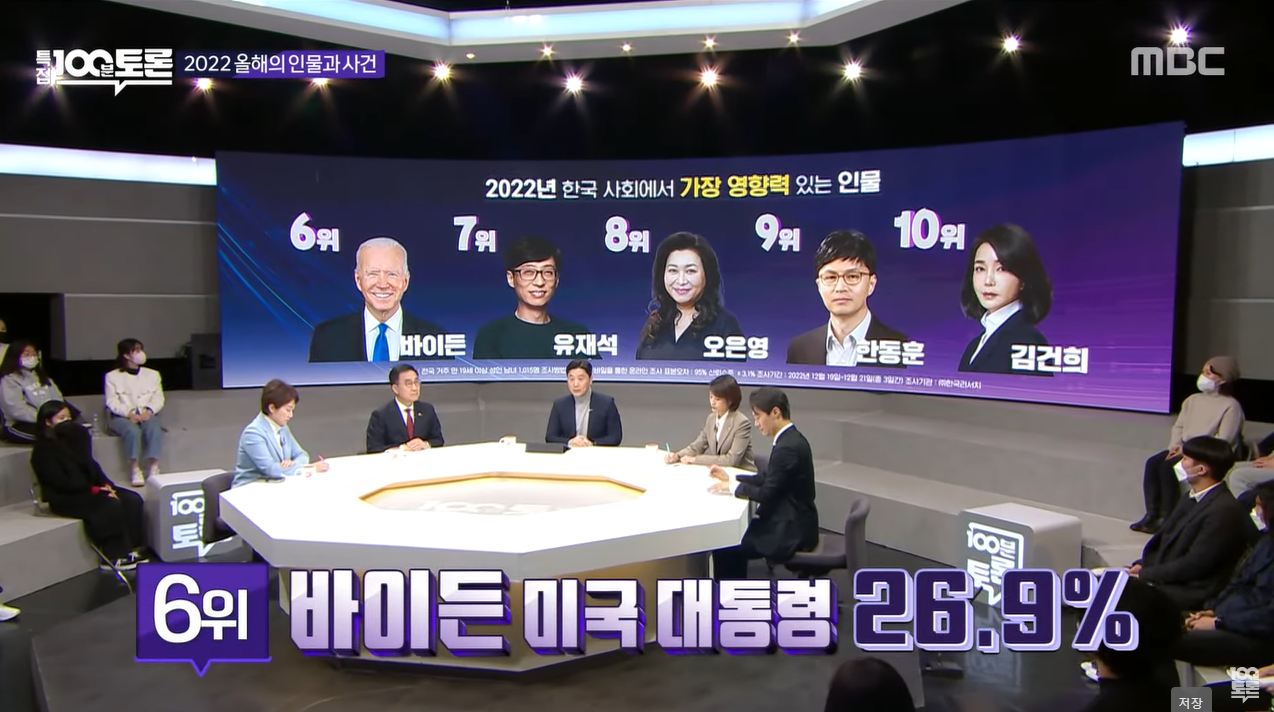 MBC100분 토론에서 올해를 대표하는 영향력 있는 인물과 사건을 발표했습니다.