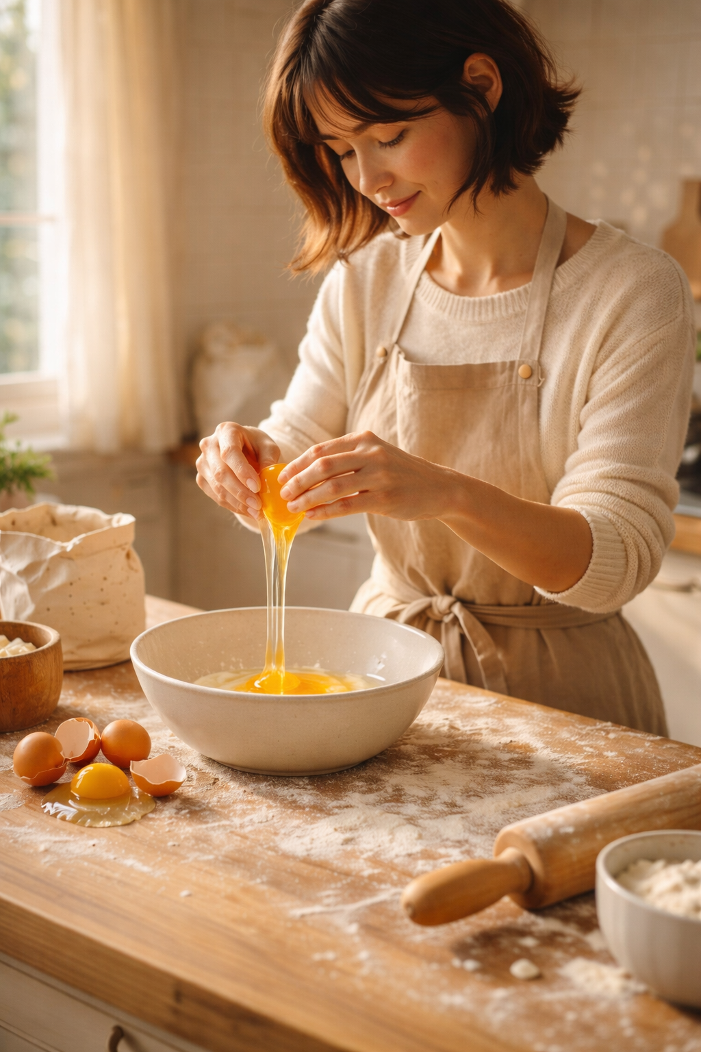 계란을 하나 들고 그릇 위에 가만히 두드렸다. 얇은 껍질이 금을 내며 갈라지고, 그 안에서 노른자와 흰자가 조용히 흘러나왔다. 그 순간, 아주 짧고도 미묘한 생각이 스쳤다.