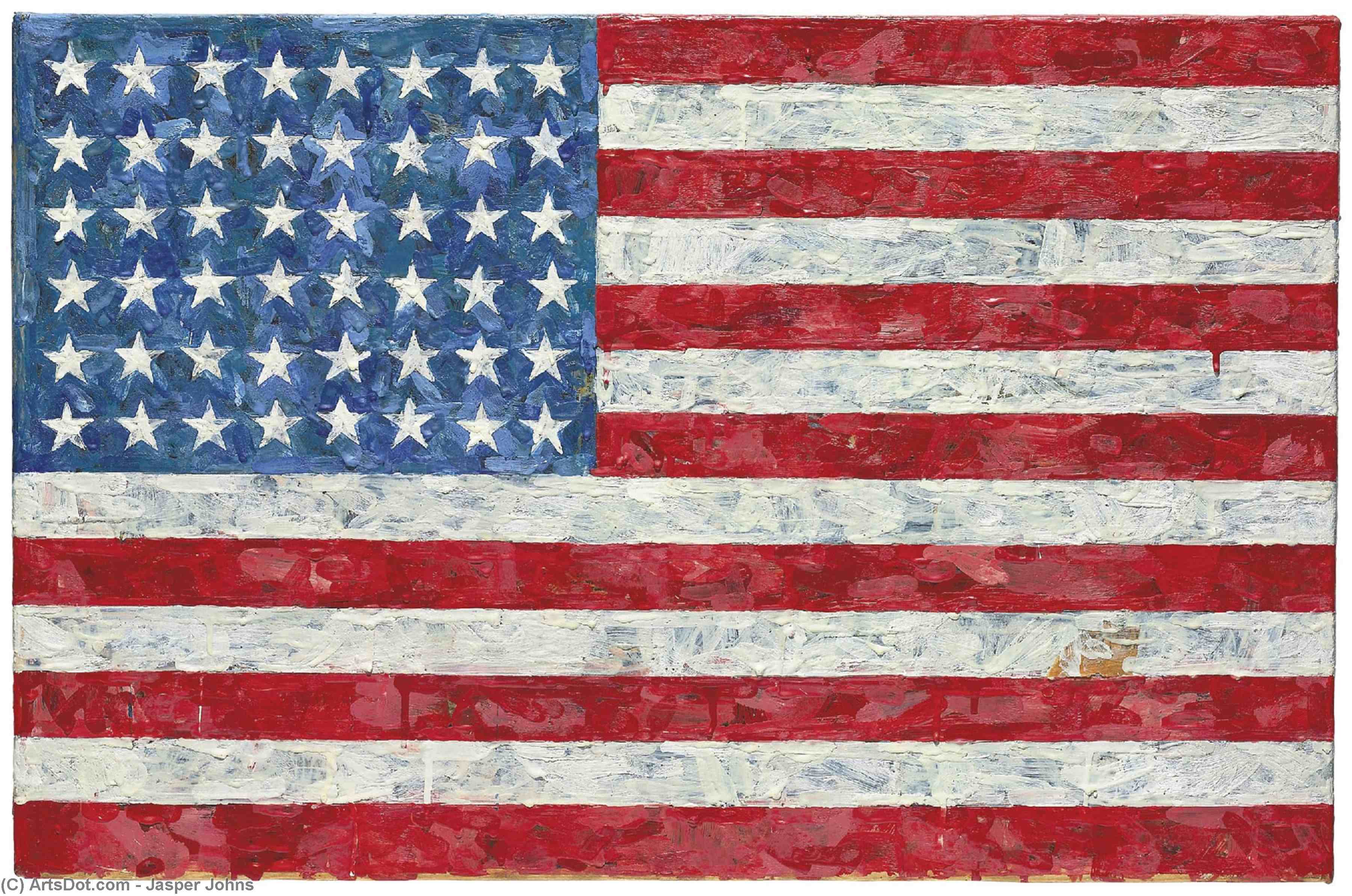 재스퍼 존스의 "깃발"은 20세기의 가장 중요한 그림 중 하나로 여겨지는 높이 평가되는 예술 작품입니다. 그것은 미국 국기를 매우 양식화되고 추상화된 방식으로 묘사한 대규모 그림입니다.