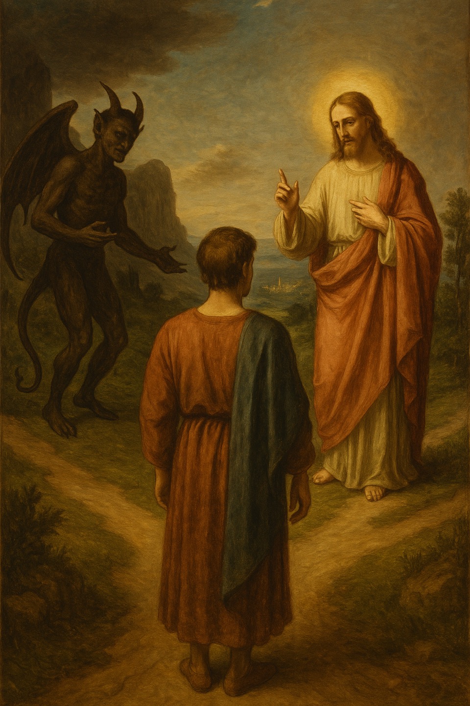 마태복음 4장, 예수님께서 성령에 이끌려 광야에서 사탄에게 시험을 받으실 때,