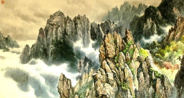 '겹겹이 쌓인 돌 사이로 거친 물소리가 봉우리들 사이를 울리네. 사람의 목소리가 가까이 있어도 분간하기 어렵네. 시시비비가 들려올까 두려워 온 산을 감싸도록 흐르는 물을 두었나 보다.'